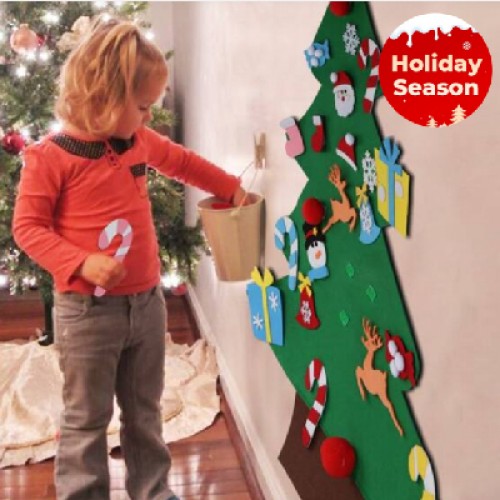 Introducing our exquisite Kids DIY Felt Christmas Tree, complete with 26 detachable ornaments including Santa, Christmas hat, Christmas socks, Snowman, Candy, and Bells, among others.